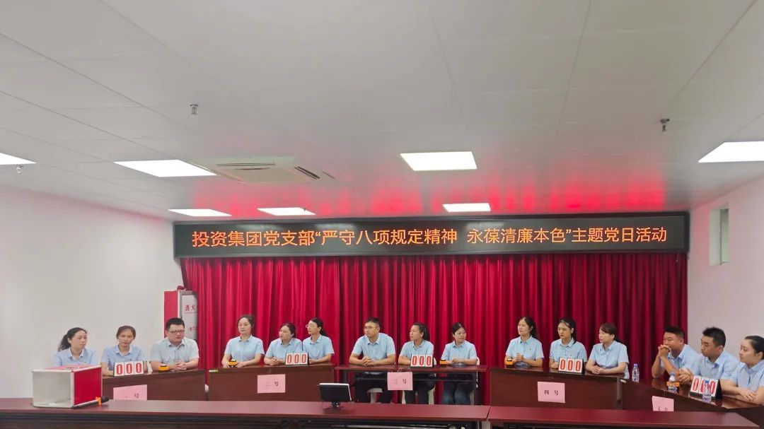 為深入貫徹中央八項規(guī)定精神學(xué)習(xí)教育,7月21日,中共南平投資集團有限公司支部委員會組織開展“嚴守八項規(guī)定精神 永葆清廉本色”主題黨日活動,通過“學(xué)習(xí)+競賽+警示”多維融合模式,推動學(xué)習(xí)教育走深走實。