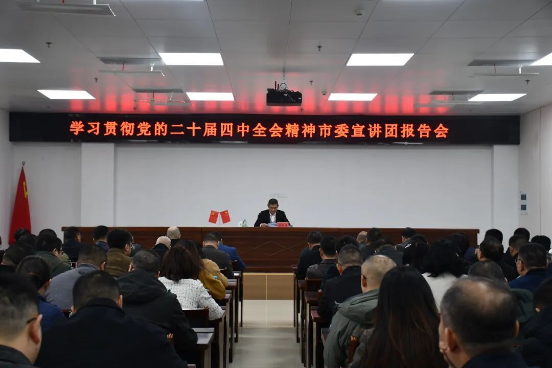 11月19日,學(xué)習(xí)貫徹黨的二十屆四中全會精神市委宣講團(tuán)在市國資系統(tǒng)開展宣講。市委宣講團(tuán)成員,市國資委黨委書記、主任胡春勇作宣講報告。